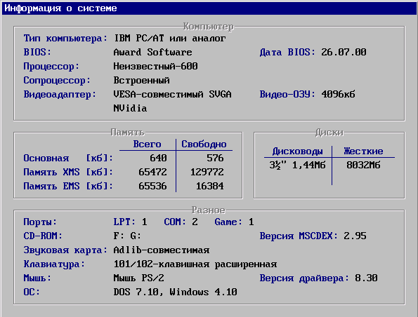 Программа содержит функции определения типа и частоты процессоров, работы с графикой, основы работы с простейшей звуковой картой и прочее, прочее, прочее...