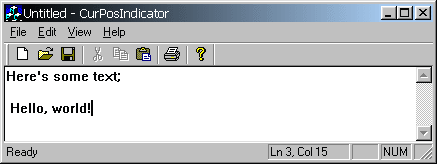 ID_INDICATOR_CURPOS и описание "Ln %d, Col %d ".