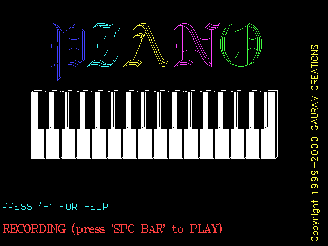Простенькое пианино. Всё звучание идёт через спикер. Позволяет сохранять проигранные мелодии и загружать записанные мелодии. Даже клавиши нарисованы объёмными :)