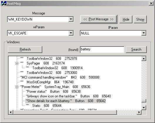 удобную утилиту SPY++ и нашёл своё окно в списке, но