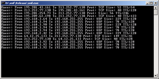 Пример простейшего сниффера для W2K/XP.