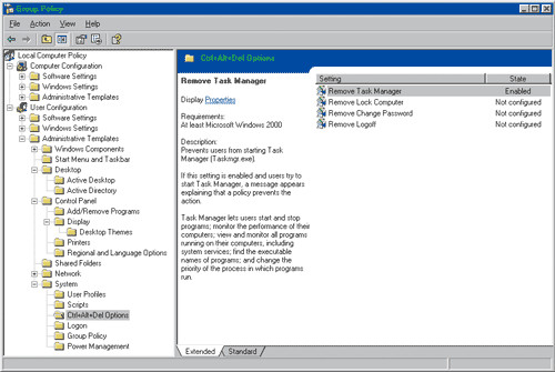Ctrl+Alt+Del достаточно установить политики. Для этого