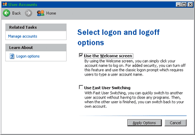 установив "Use the Welcome screen" в Control Panel | User Accounts: