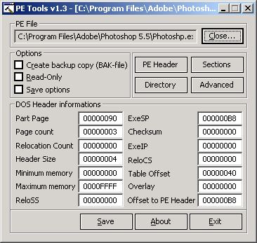 - v1.3 - [01.06.2002] + Программа переименована в PE Tools. +