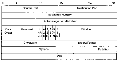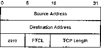 Между TCP-заголовком и IP-заголовком располагается так называемый псевдозаголовок (рис. 2.14). Он состоит из IP-адреса отправителя (Source Address), IP-адреса получателя (Destination Address), типа протокола (PTCL) и длины TCP-пакета (TCP Length). Он предназначен для "страховки" неправильной маршрутизации TCP-пакета. Информация, расположенная в этом заголовке передается TCP от IP-протокола как аргумент или результат обработки вызова IP-функции.