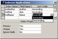 свойстве IndexName компонента TADOTable. Свойство IndexFieldNames