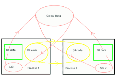 овалы в Process1 и Process2 под названием GD1 и GD2 (Global Data 1/2).