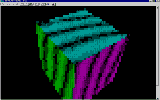 Демо в текстовом режиме. Вращающийся куб, каждая грань которого заполнена динамически изменяющейся плазмой. Textmode texturemapping, plasma and 3d by The Joker/crusaders