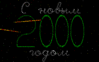 Демонстрашка к 2000 году, 13h, Real Mode. Несущиеся по звездному небу метеориты и кометы рисуют поздравление с новым 2000 годом...