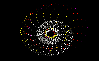 Замечательная, запоминающаяся демка - вращающаяся спираль из точек с плавно изменяющимся цветом, создающим эффект 3-х мерности спирали.