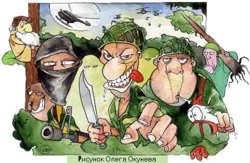 свежевыкрашенного хамелеона. Учились метать вилки и ложки. Потому что сержант