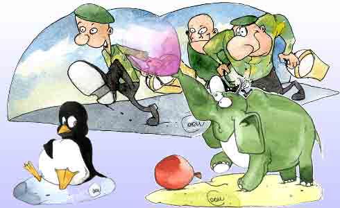 ковровом бомбометании страусиными яйцами и экскрементами бегемотов.