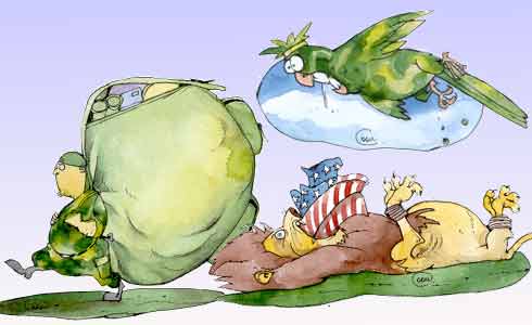 Чтобы он не распугал противника, засунули ему кляп из американских флагов