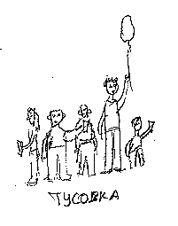 - Есть, - отвечает он. - Улица 1905 года. - Давай встретимся на этой станции в центре зала, - предлагаю я. - Самый удобный способ. А потом поведешь меня хоть к шашлычной, хоть к Кобзону, хоть куда. - В центре зала плохо встречаться, - авторитетно заявляет он. - Потеряемся в момент! - Предлагай другой вариант, - терпеливо говорю я. - Давай у эскалатора последнего вагона, который на самом деле первый из центра, - предлагает он. - Только сверху, а не снизу, если смотреть сверху. Оттуда удобно выходить к бывшей шашлычной. Я некоторое время потрясенно молчу. Потом тихо говорю: - Сереж, ты меня любишь? На том конце тут же появляется напряженное молчание. - Я тебе сейчас задумаюсь! - взрываюсь я. - Да нет, - говорит он. - Конечно люблю и все такое. Просто хотелось как-то покрасивее выразиться. - Не трудись, милый, - говорю я. - Не выражайся. Просто если ты меня любишь, пообещай исполнить одну необременительную, но важную для меня просьбу. - Обещаю, - важно говорит он, - если это меня не обеременит. - Встреться со мной в центре зала метро "Улица 1905 года", - просительно говорю я. - После этого веди меня, куда хочешь. - Ну хорошо, хорошо, - бурчит он. - Хотя я не понимаю, почему ты не врубаешься. Ведь это так просто. На том месте была шашлычная... - До встречи, милый, - говорю я и вешаю трубку. На всякий случай, я приехала за 15 минут до назначенного срока. В метро, как ни странно, уже ощущалось присутствие выставки. По перрону гуляли странного вида молодые люди, на многих из которых были нацеплены таблички с какими-то именами и цифрами. По виду подавляющее большинство было точь-в-точь похоже на Сергея, когда я его первый раз встретила: джинсы, свитер, длинные волосы и совершенно отсутствующий взгляд, погруженный куда-то внутрь. Наконец, заявился мой благоверный, который спустился сверху. И тут только я заметила, насколько благотворно на него повлияло общение со мной. Конечно, фрак с бабочкой он не надел, но выглядел вполне прилично, и даже от недавно сделанной прически еще что-то осталось. Но самое главное - взгляд! Взгляд у него уже не был обращен только куда-то внутрь себя, как у остальных программистов. Я так думаю, что это исключительно моя заслуга. Сергей прибежал, несколько запыхавшись, и заявил, что пора отправляться наверх, потому что народ уже собрался, и все только нас и ждут. Я ответила, что, собственно, и не собиралась торчать в метро до вечера, поэтому мы отправились наружу... Вышли из метро и Сергей меня быстро повел к этой кобзоновской аптеке, где напротив раньше была шашлычная, и где, по его словам, собиралась вся эта программистская камарилья. Пришли. Рядом со входом в аптеку действительно толпился народ довольно странного вида. Там были как совсем молоденькие ребята, так и довольно взрослые. Но у всех в лице было что-то общее, как будто я попала на встречу одной баскетбольной команды. Почти у каждого на одежде был прикреплен прямоугольничек с именем и какими-то цифрами. - Хай, пипель! - приветствовал Сергей эту компанию. - Знакомьтесь - это Ирина. Моя боевая подруга. - Привет, - сказал мне один высокий парень. - Я - сто три точка двадцать три. - А я, - сказал другой, - сто двадцать девять точка пятнадцать. - Четыреста семьдесят седьмой, - представился приятного вида молодой человек в очках. - Триста пять пятнадцать, - лихо щелкнул каблуками еще один. И вот так вся толпа называла мне какие-то цифры. И тол