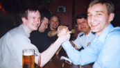 Встреча продолжается и мы уже порядком веселые. Белый, Leprecon, Uncle_Bob, Muran выглядывает, reporter похоже решил что-то спеть :), Math |