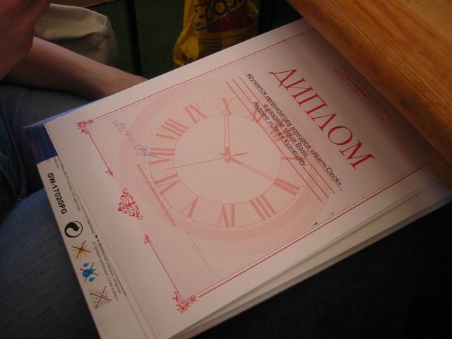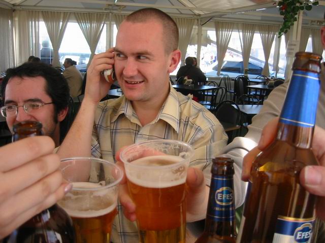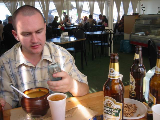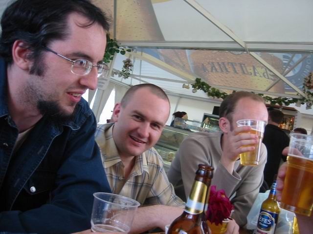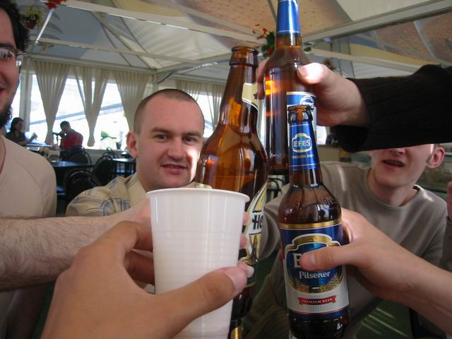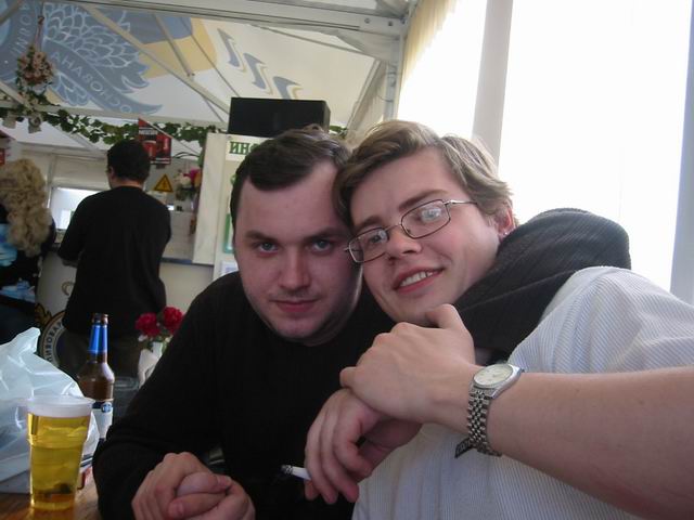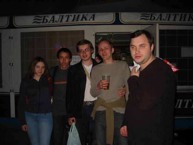 Но не будем о грустном! Побродив немного по окрестным территориям, мы нашли подходящую замену - летнее кафе рядом с Савеловским вокзалом. На постоянное место это не тянет, но разок посидеть было весьма неплохо. Присутствовали 8 человек: Iskander, Crew, ViGOur, AQL, Leprecon, Flex Ferrum, souris, dark0ut. Следующая особенность сейшна - это то, что на нем была девушка! Согласитесь, в последнее время это редкое событие. И, наконец, кульминацией встречи был телемост (а точнее, мобайлмост) с Питером! В это время наши северные коллеги и друзья также собрались на сейшне. Правда, их было немного - Muran, Uncle_Bob и Vad_dimm. Зато это был первый (надеюсь, далеко не последний) сейшн двух столиц. 21 минуту мы делились впечатлениями и просто болтали с Питером. После чего, было высказано предложение о мегасейшне в конце августа. Думаю, это будет поистине незабывающимся событием! Ну а мы посидели до 10 вечера, после чего разъехались по домам (не все, правда, по своим :)). В общем, как всегда отлично погудели!