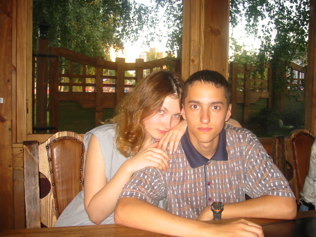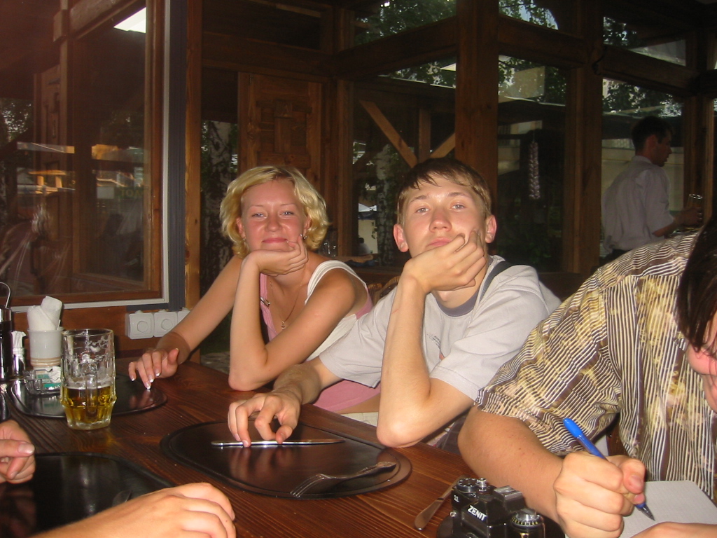 Кафе было совсем рядом с метро, и оказалось отличным и приятным местом - небольшие деревянные домики с открытыми окнами. Это вполне соответствовало нашей мечте после долгого катания на метро в жаркий день - вот только холодного пива бы ещё...:) Благо, в "Сим-Сим" нашлось и это! (хорошо, что Лужники далеко оттуда :))