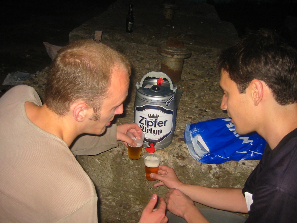 Постепенно народ начал расходится, и когда нас было где-то вполовину меньше, чем сначала, Leprecon и ViGOur пошли за следующим бочонком... Его мы распили в следующем составе: Lucifer, Leprecon, souris, ViGOur, byte, dark0ut и Crew. И уже совсем поздно вечером мы разъехались по домам... На чем, собственно, самый большой сейшн в истории Исходников и завершился!