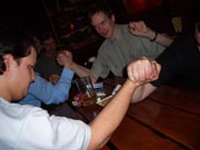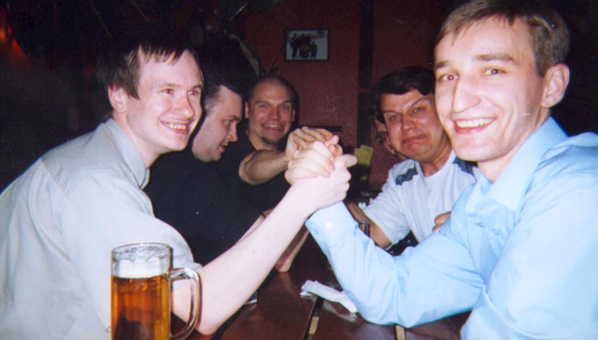 А вот борьба на руках после прыжков в высоту. Не смотрите на наши страшные лица - это мы специально для фотоаппарата придуриваемся. Vad_dimm vs Math, Leprecon vs reporter, Uncle_Bob нас страхует, а где-то там на заднем плане должен быть Muran |