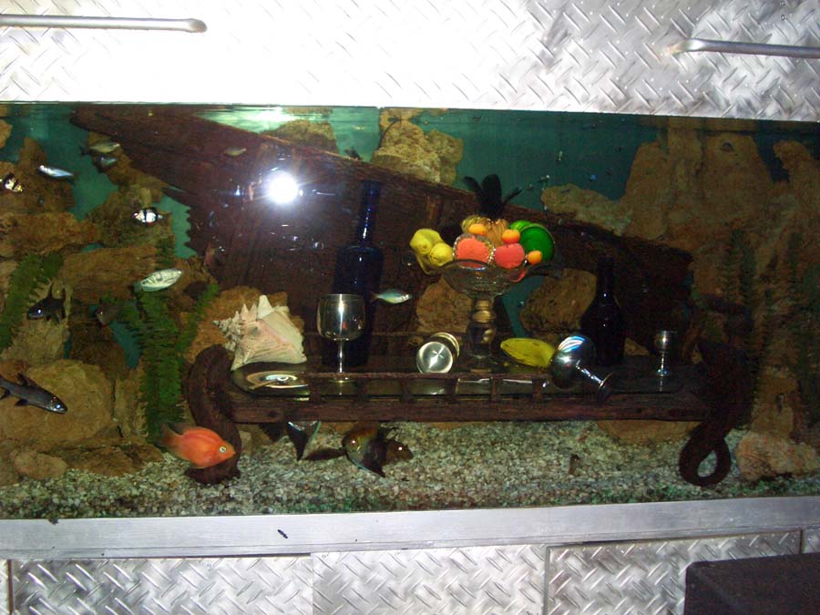Белый в соседнем зале. В нем много аквариумов, зато в нашем старинная обстановка и куча красивых моделей кораблей. |