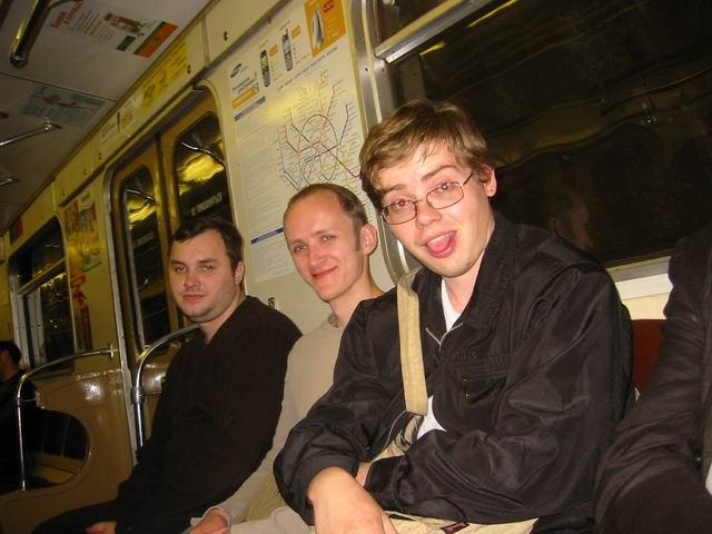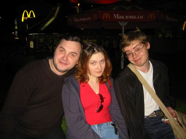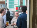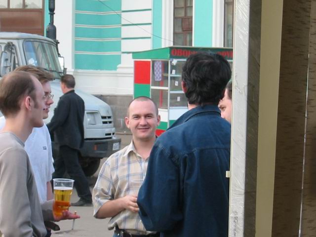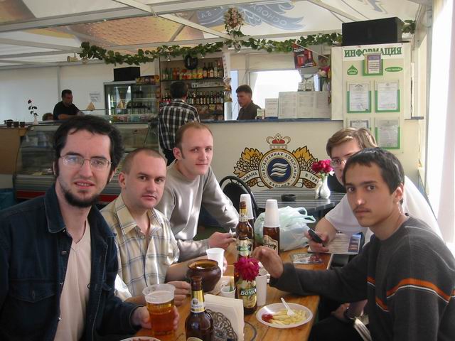 Но не будем о грустном! Побродив немного по окрестным территориям, мы нашли подходящую замену - летнее кафе рядом с Савеловским вокзалом. На постоянное место это не тянет, но разок посидеть было весьма неплохо. Присутствовали 8 человек: Iskander, Crew, ViGOur, AQL, Leprecon, Flex Ferrum, souris, dark0ut. Следующая особенность сейшна - это то, что на нем была девушка! Согласитесь, в последнее время это редкое событие. И, наконец, кульминацией встречи был телемост (а точнее, мобайлмост) с Питером! В это время наши северные коллеги и друзья также собрались на сейшне. Правда, их было немного - Muran, Uncle_Bob и Vad_dimm. Зато это был первый (надеюсь, далеко не последний) сейшн двух столиц. 21 минуту мы делились впечатлениями и просто болтали с Питером. После чего, было высказано предложение о мегасейшне в конце августа. Думаю, это будет поистине незабывающимся событием! Ну а мы посидели до 10 вечера, после чего разъехались по домам (не все, правда, по своим :)). В общем, как всегда отлично погудели!