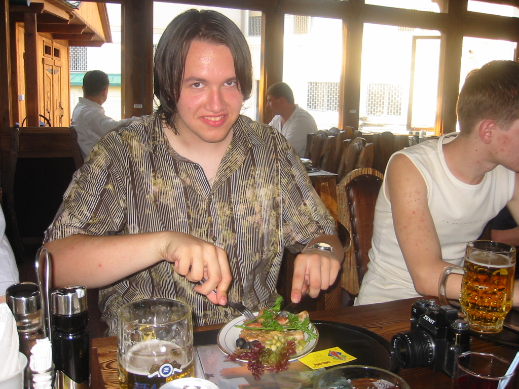 Блюда были достойными, правда немного дороговатыми по сравнению с привычной вьетнамкой. Но если "Балтику-7" принесли сразу, то еды мы ждали достаточно долго... Зато как было здорово, когда нам её наконец-то принесли! К этому времени и подошел purpe. Чтобы не уходить с места, мы договорились с администрацией ("Сим-Сим-а", а не Исходников :)) о распитии чешского Staropramen-a прямо здесь, в кафе. В общем, все условия для хорошего отдыха в большой компании.
