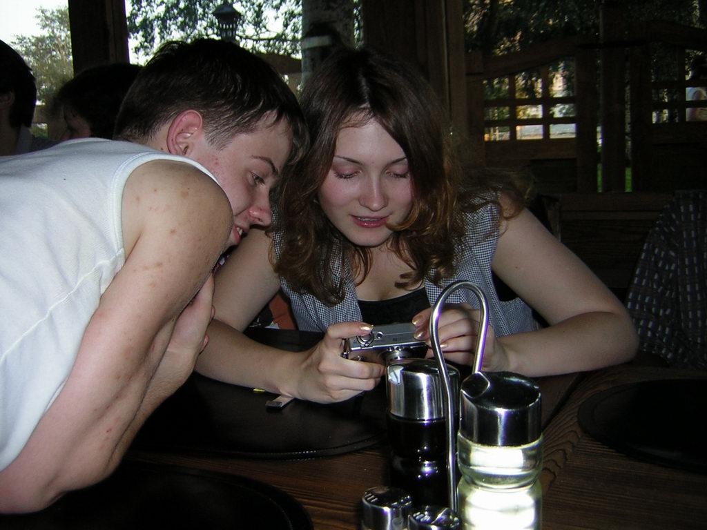 Кафе было совсем рядом с метро, и оказалось отличным и приятным местом - небольшие деревянные домики с открытыми окнами. Это вполне соответствовало нашей мечте после долгого катания на метро в жаркий день - вот только холодного пива бы ещё...:) Благо, в "Сим-Сим" нашлось и это! (хорошо, что Лужники далеко оттуда :))