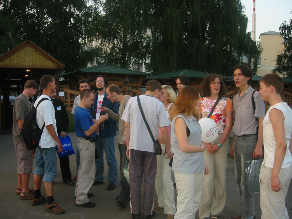 Итак, станция метро Парк Культуры, 16.00. Нас было сразу много - 17 человек: Antipich, Song, vot, souris, dark0ut, Zed, Оксана, Dice, Riana, Lucifer, Crew, ViGOur, Leprecon, byte, SergeS , AQL и Flex Ferrum. Присутствовали все администраторы, правда, purpe присоединился позже - когда мы уже сидели в кафешке, и тогда нас стало 18. И ещё было сразу