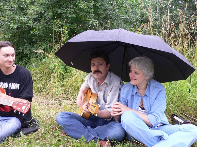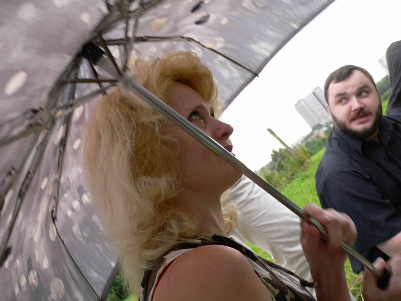 Начал накрапывать дождик, и всем захотелось под зонтик |