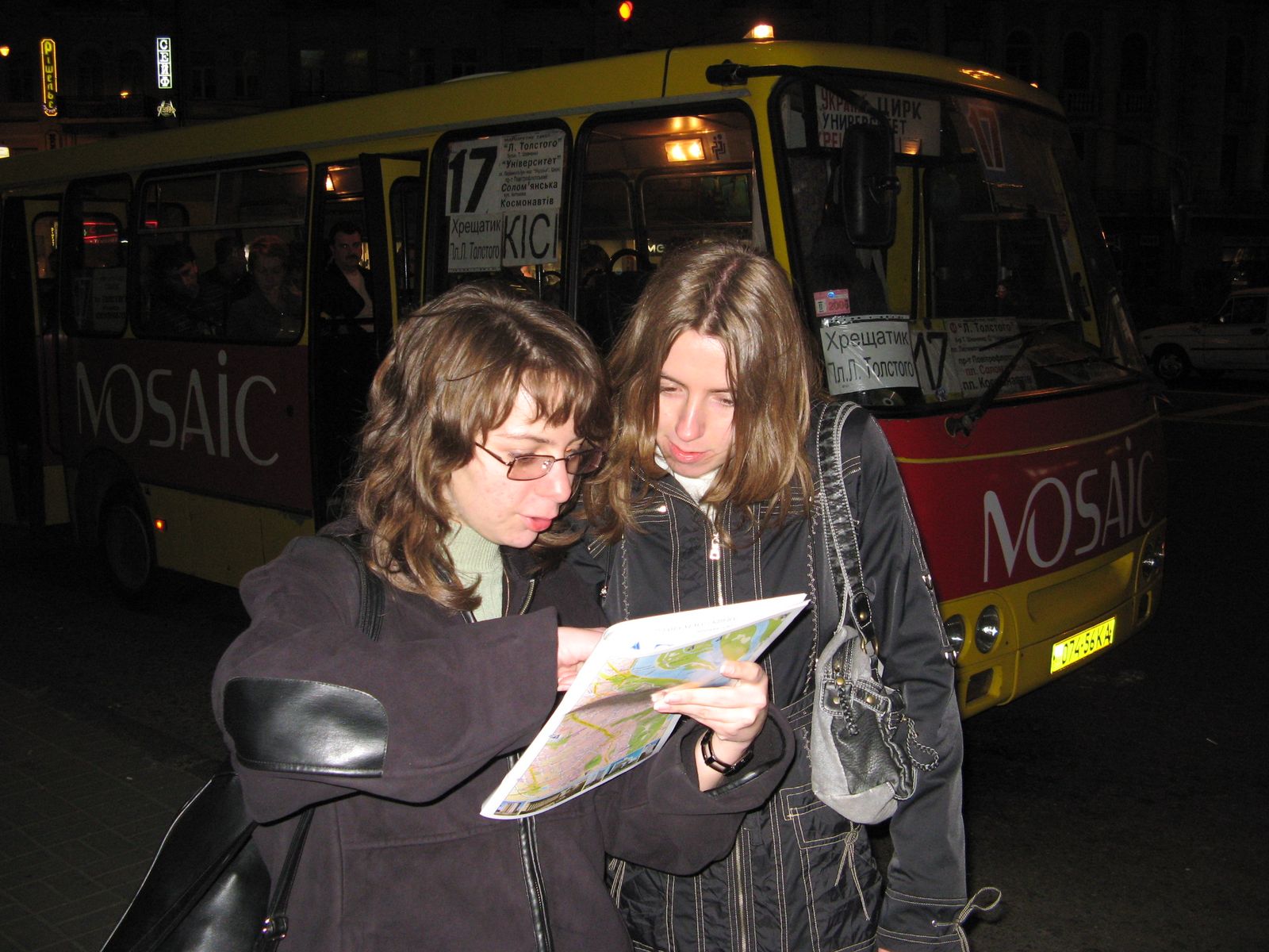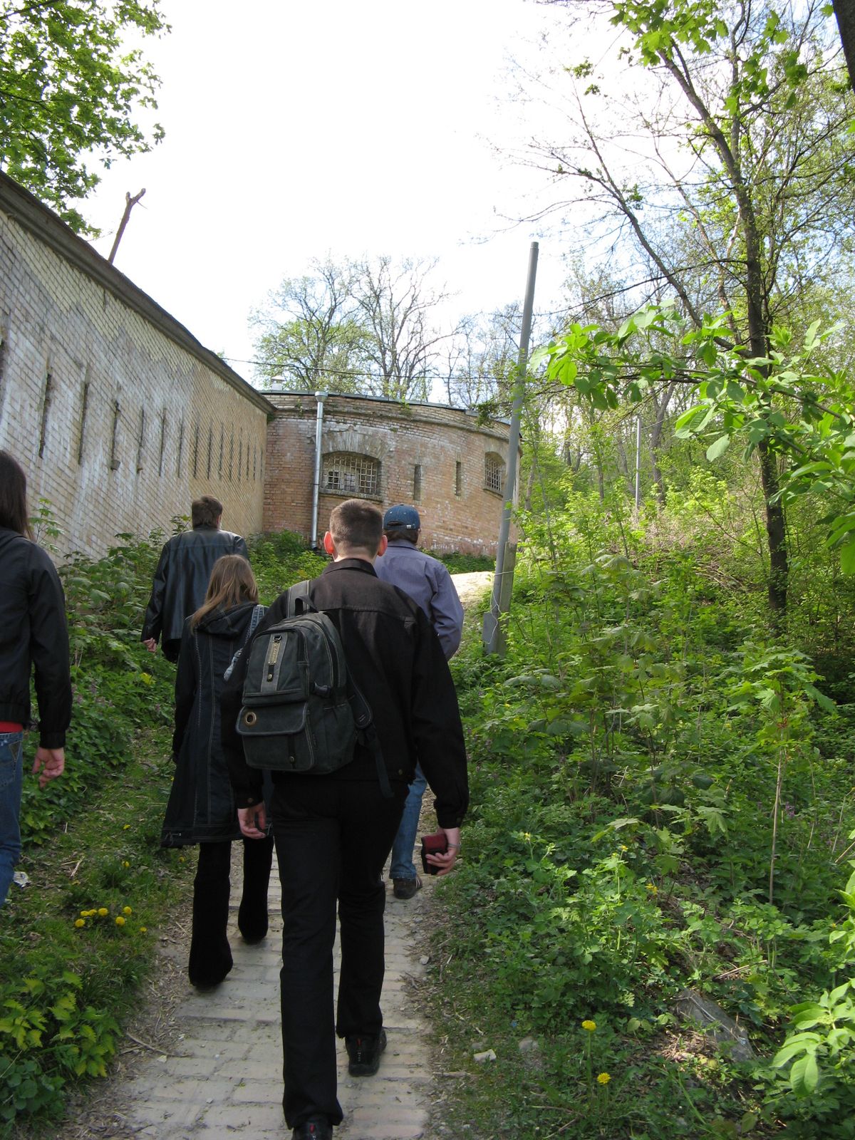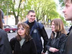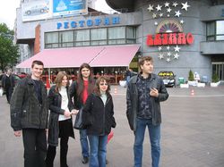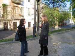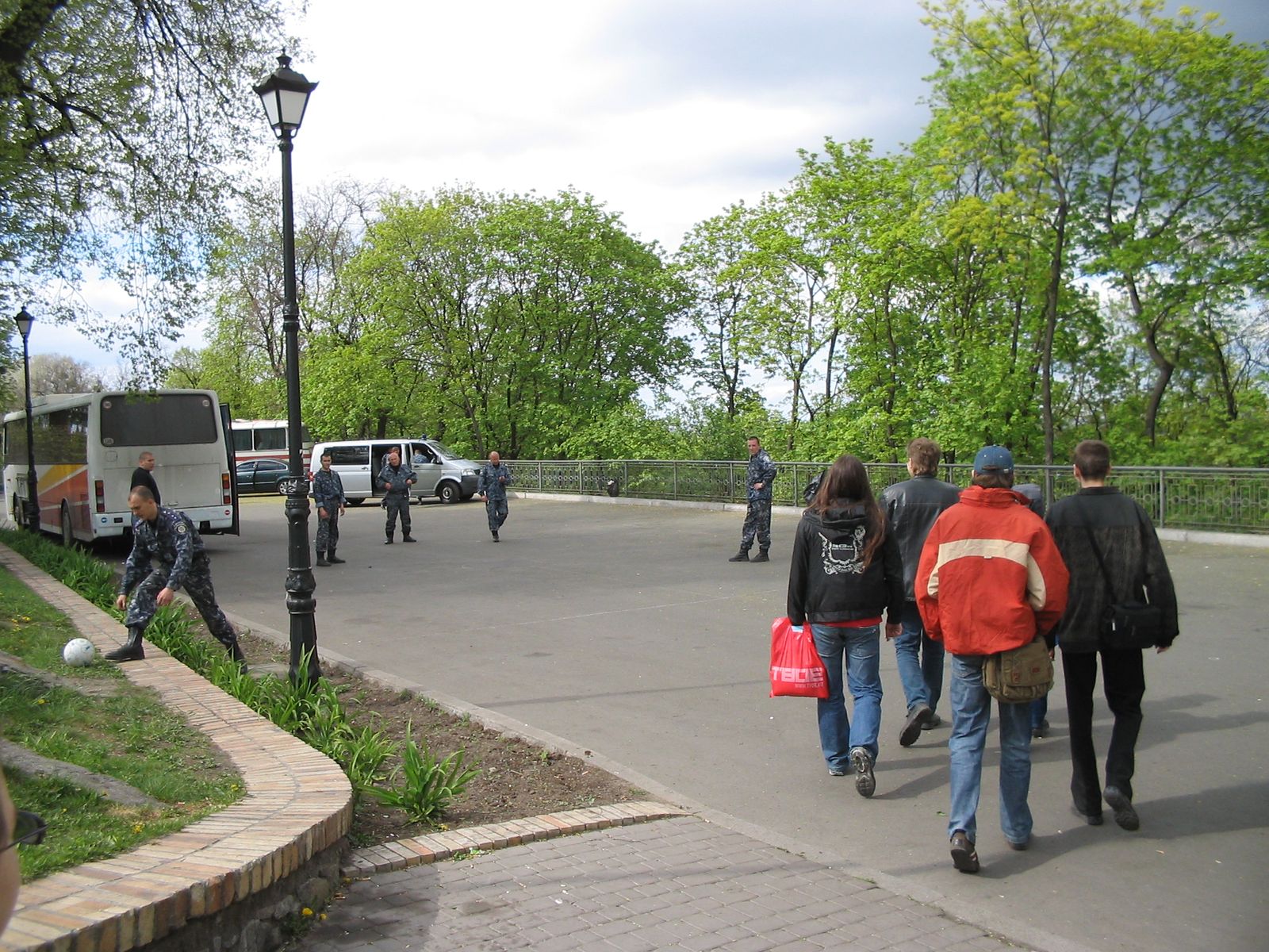 Вообще, мы решили пройтись прогуляться по Крещатику, и пойти в сторону Арсенальной... По дороге найти какую-то кафешку да попить пивка... Но не тут-то было... Кафешки на Крещатике-то были, но ни одна из них, как на зло, не работала :( На улице в палатках пива также не оказалось... Кроме того, ни один из нас не знал, в какую сторону идти к Арсенальной :) Решили спросить у всезнающего пипла. Первыми советами каждого киевлянина было "садитесь на метро и проедете одну остановку", даже несмотря на то, что мы сразу пытались предупредить о том, что собираемся пройти сей "дюже далёкий путь" пешком. Некоторые просто пожимали плечами. Один добрый товарищ не слишком уверенным тоном сказал, что нужно идти по Крещатику в сторону универмага, и там дескать поворачивать направо... На том и договорились - дошли до универмага и остановили очередного прохожего тем же банальным вопросом... На что получили уверенный ответ, что нужно нам дескать идти в обратную сторону - к площади - до улицы Грушевского (оная, судя по словам киевлянина должна была уходить круто вверх). На том и порешили - вернуться назад и найти такую улицу... Несколько раз останавливали прохожих чтобы уточнить, где находится оная улица, даже искали по моей карте Киева - бесполезно. Дошли опять до Площади Независимости и определили "безымянную" (ввиду того, что никто так и не сказал как она называется, а табличек тоже не нашли) улицу, довольно круто поднимающуюся вверх. По ней и пошли. Как вскоре оказалось, улица называлась Институтской, и шла она действительно параллельно улице Грушевского (что мы уже узнали ещё у одной прохожей)...