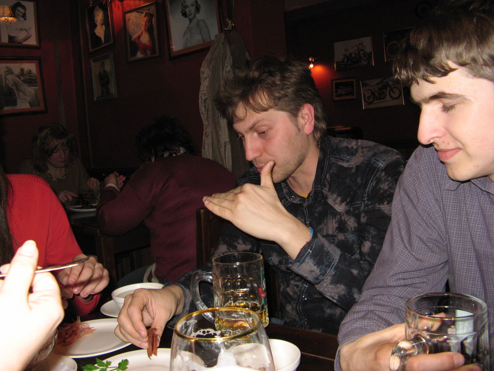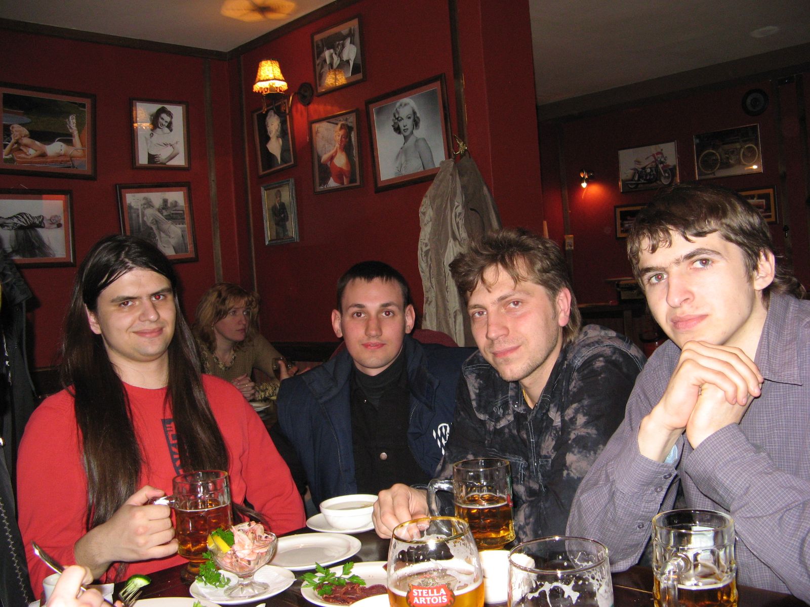 Немного проголодавшись после прогулки, решили зайти в паб "Сундук", и опрокинуть по бокальчику пива. На фотке LuckLess, втесавшийся в кадр --= Eagle =--, Shaman и C06akaDuka