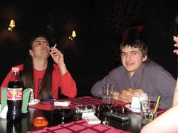 Решив подкрепится мы отправились в кафе. После того как мы сделали заказ, нам пришлось его немного подождать, пока длилось это "немного", к нам присоединился C06akaDukа с девушкой (по непонятным причинам, девушка в кадр не попала).