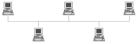 среды передачи, что означает подключение всех объектов РВС к одной общей шине (сетевая топология "общая шина", рис. 7.1). Это приводит к тому, что сообщение, адресованное только одному объекту системы, будет получено всеми ее объектами. Однако только тот объект, адрес которого указан в заголовке сообщения, будет считаться получателем. Очевидно, что в РВС с топологией "общая шина" на уровнях, начиная с сетевого и выше, необходимо использовать специальные методы идентификации объектов (см. далее раздел "Виртуальный канал связи"), так как идентификация на канальном уровне возможна только в случае использования сетевых криптокарт (что на сегодняшний день является экзотикой).