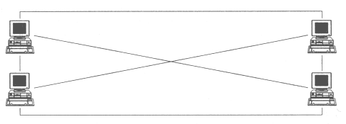 Очевидно, что идеальным с точки зрения безопасности будет взаимодействие объектов РВС по выделенным каналам. Существуют два возможных способа организации топологии распределенной ВС с выделенными каналами. В первом случае каждый объект связывается физическими линиями связи со всеми объектами системы (рис. 7.2). Во втором случае в системе может использоваться сетевой коммутатор (switch), через который осуществляется связь между объектами (топология "звезда", рис. 7.3).