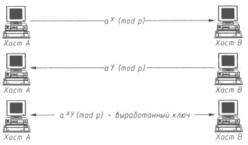 Особенность данного криптоалгоритма состоит в том, что перехват по каналу связи пересылаемых в процессе создания виртуального канала