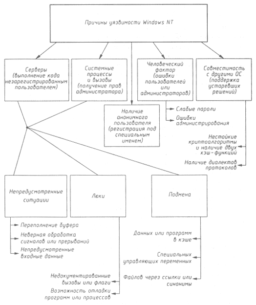 Оказывается, что классификация причин уязвимости Windows NT весьма похожа на рассмотренную аналогичную классификацию для UNIX (рис. 9.5).