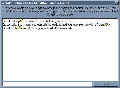 На примере клиента чата показывается как заменить в окне сообщений чата смайлик ":)" на изображение улыбающейся рожицы :)