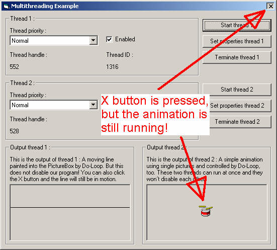 (hWnd). Он позволяет Вам управлять потоком. Если