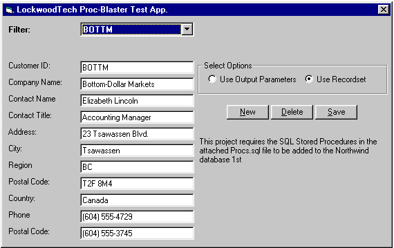 SQL/Stored Proc/ADO - тестовый проект